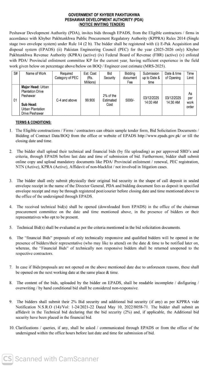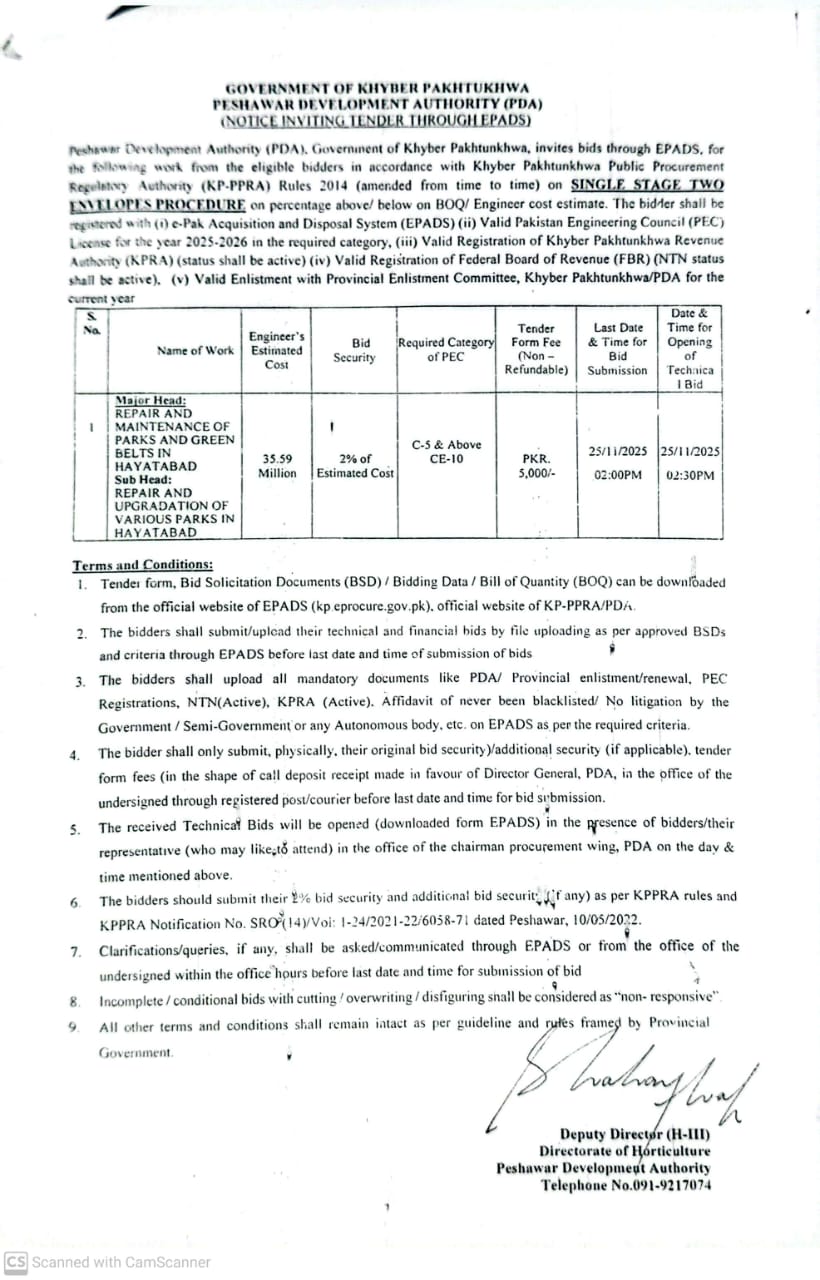 In 1975 the Greater Peshawar Metropolitan Authority (PMA) was created under Urban Planning Act 1975. In 1978 the Provincial Government promulgated Urban Planning Ordinance (UPO) & under its Section-17 Local Area Authorities (LAAs) were established and the PMA was renamed as PDA. Provincial Urban Development Board (PUDB) was established under section - 3 of the UPO to run the affairs of the LAAs under the administrative control of Physical Planning & Housing Department (PP&H), Provincial Government.n 2001 the Local Area Authorities were devolved to respective City / District Government under Local Government Ordinance 2001 and 1978 was repealed through an Ordinance in May 2002. In 2012 all the Local Area Authorities under section 80 were placed under the administrative control of Local Government & Rural Development Department Government of Khyber Pakhtunkhwa. In 2013 All the Local Area Authorities under section 121(2) retained in Local Government, Elections & Rural Development Department of Khyber Pakhtunkhwa & shall continue to exercise administrative controls over Local Area Authorities. and more.