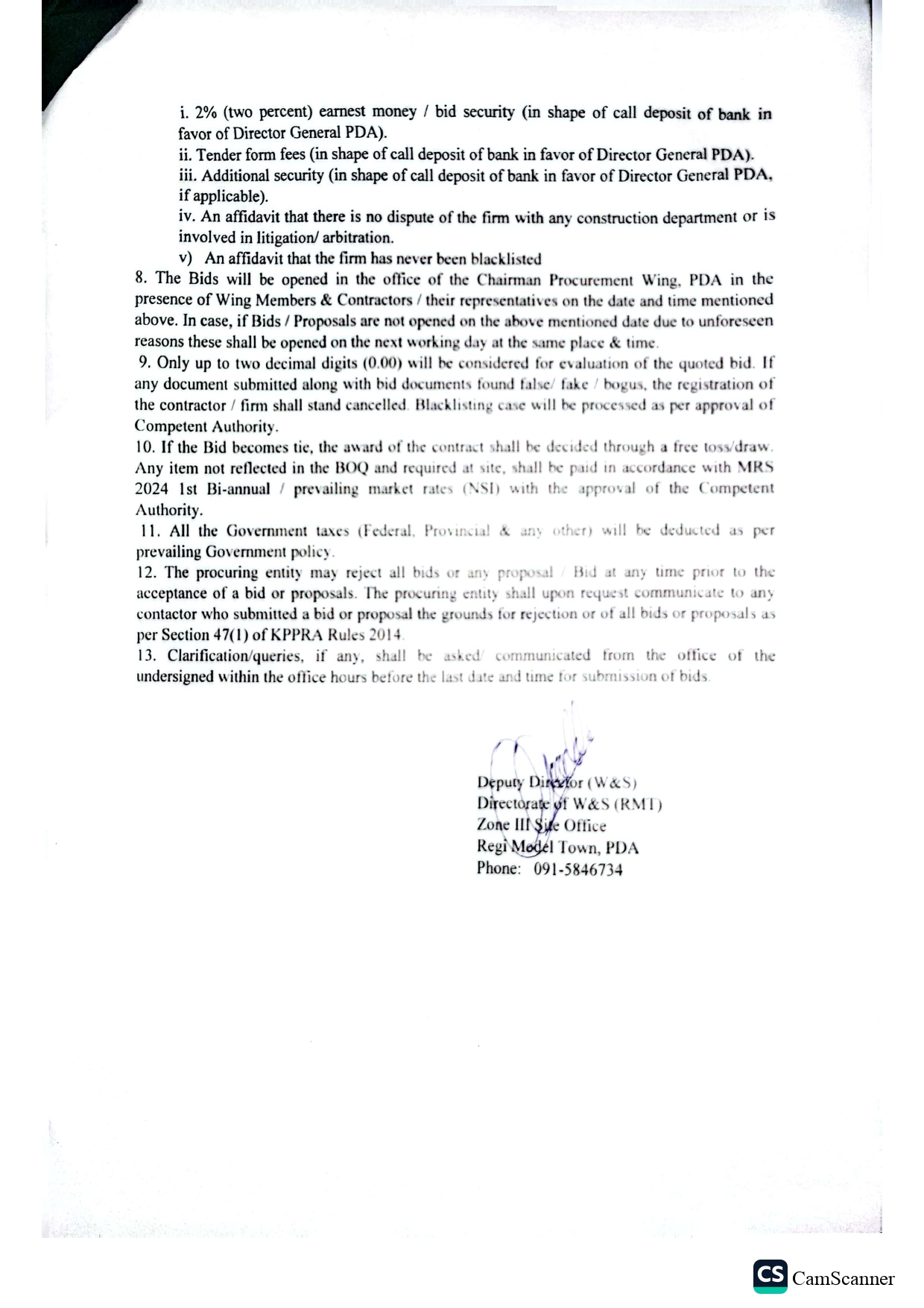 Notice Inviting Tender on EPADS in Regi Model Town Peshawar
